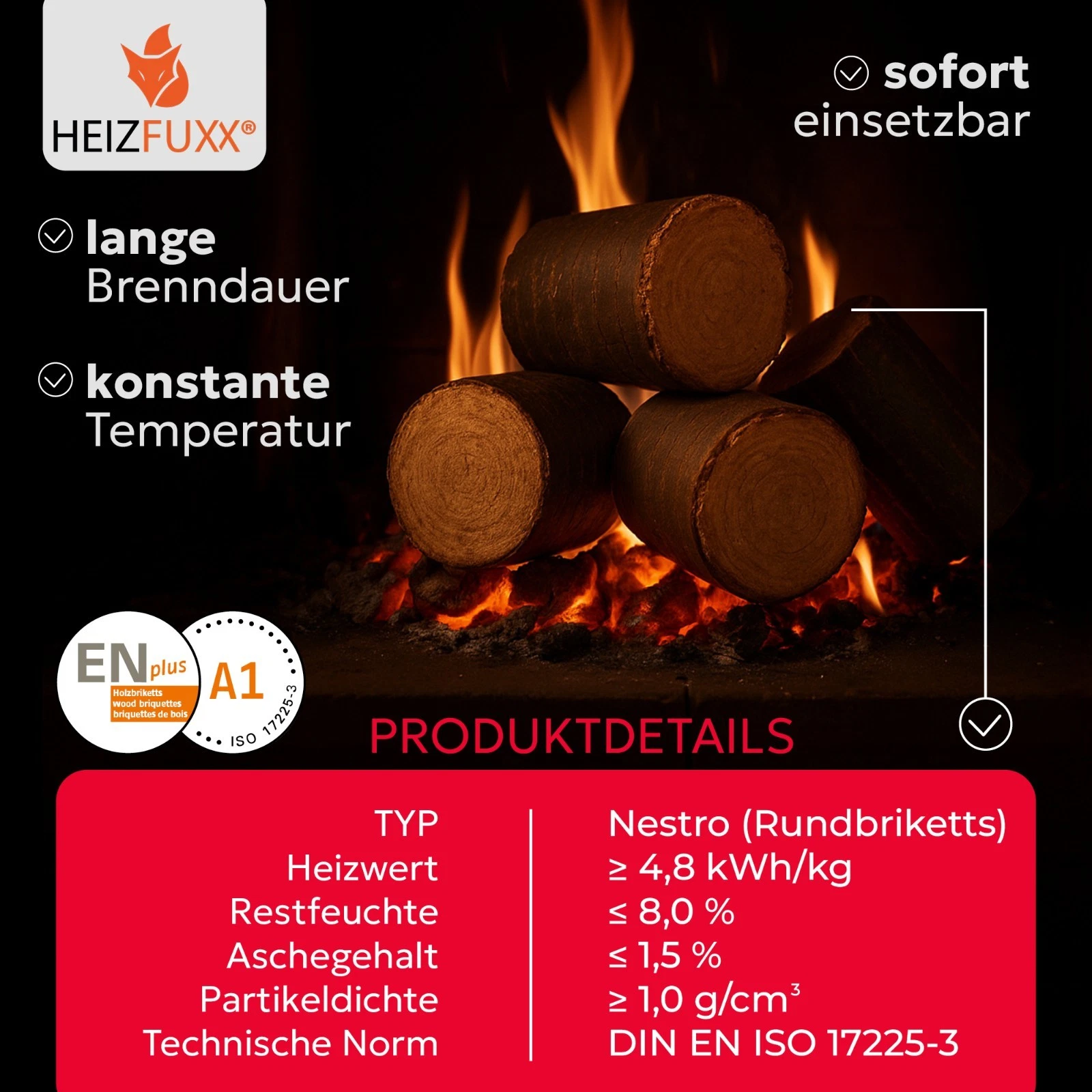 🔥 HEIZFUXX® Nestro XL Rundholzbriketts – Produktvorteile