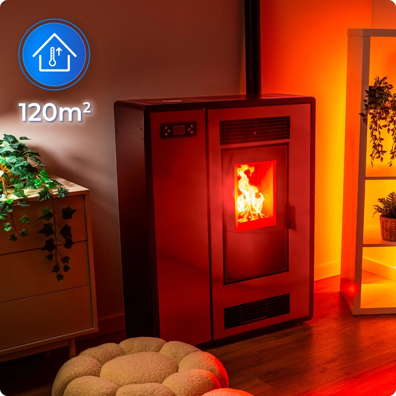 Pelletofen 12 kW Wärmeleistung Pellet Pelletheizung THUNDER® ARIA-RED