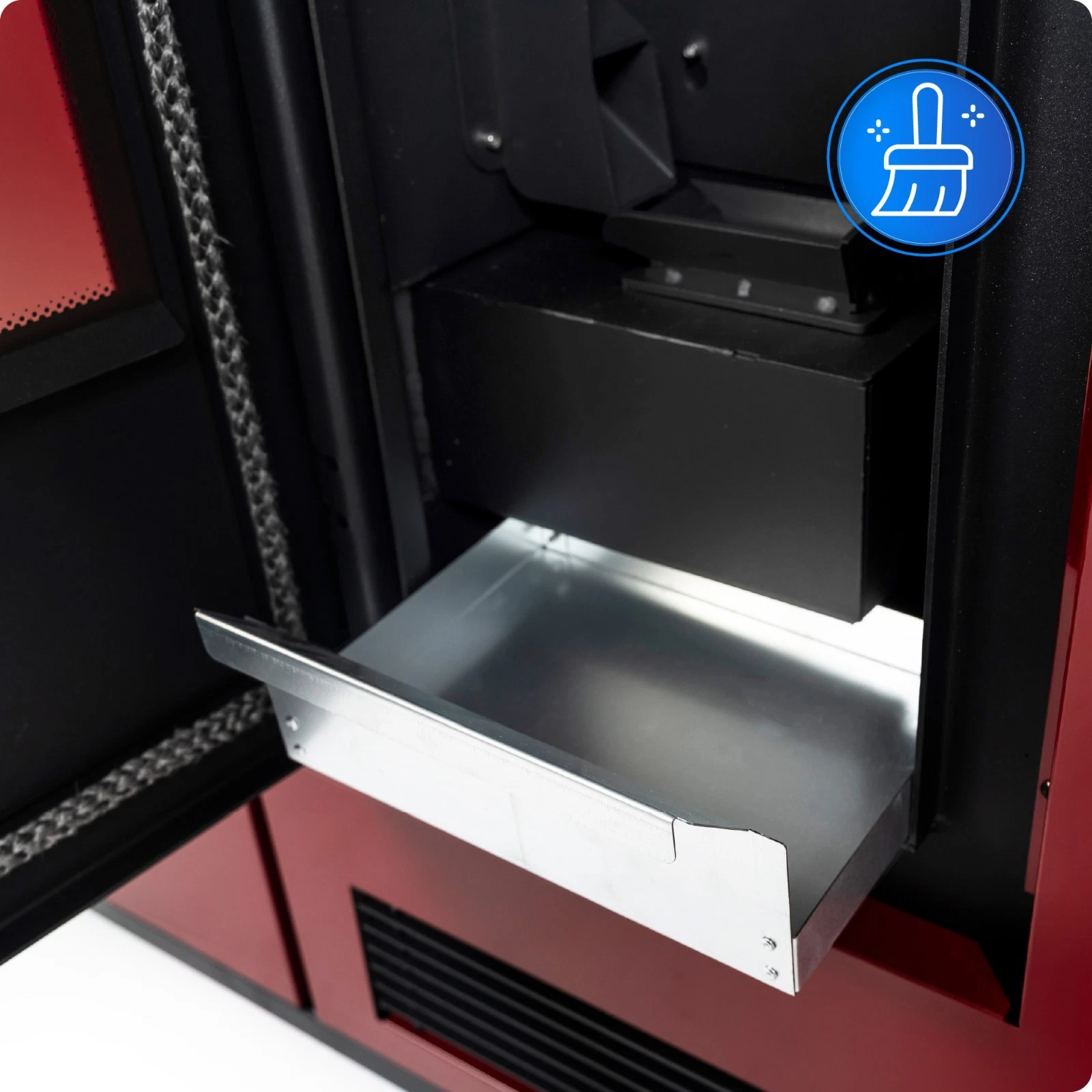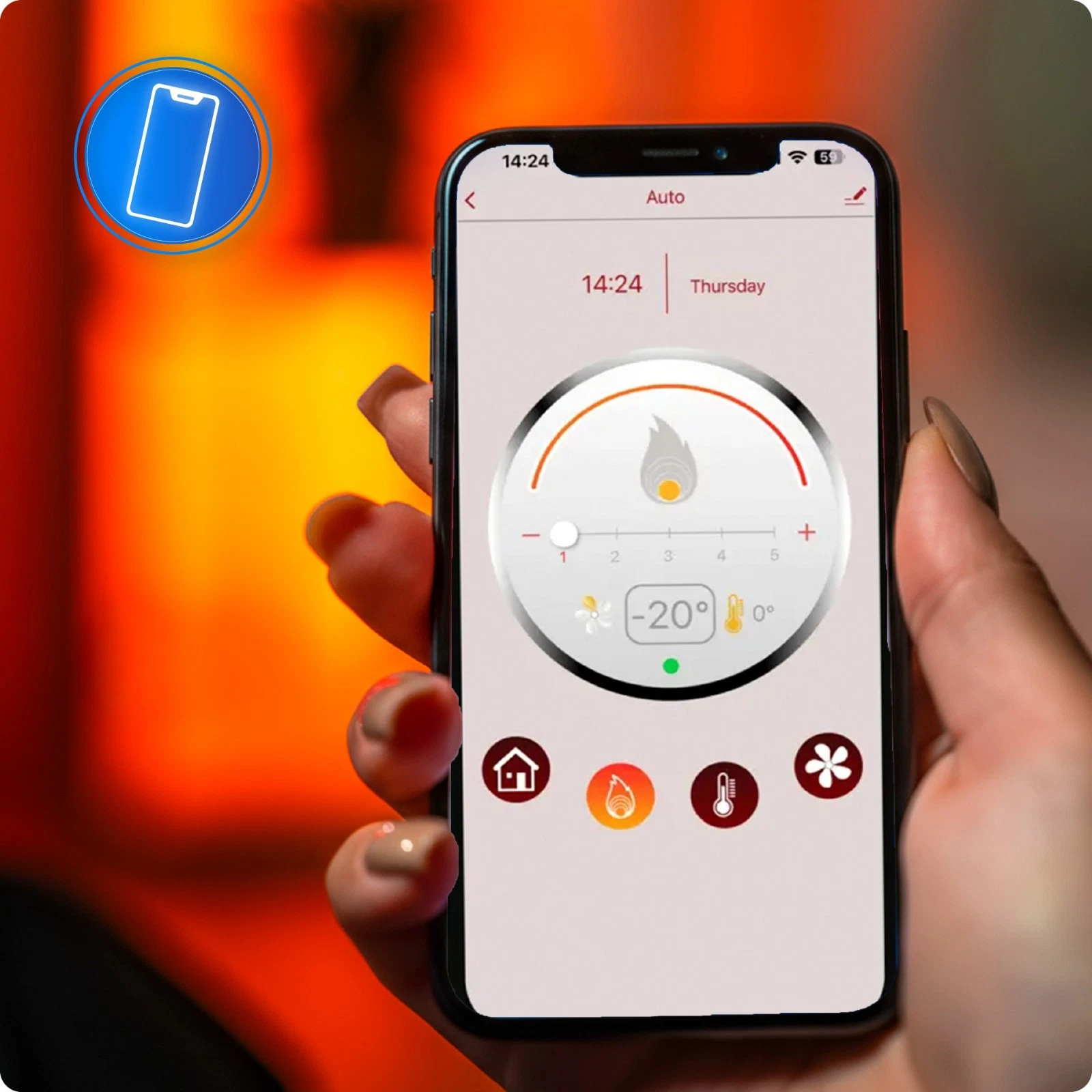 Vollautomatischer Ofen mit Gebläse – einfach in der Handhabung. Steuerbar über Thermostat, Fernbedienung, App oder Timer (0‑12 h). Tagesprogrammierung sorgt für Komfort – immer warm, wenn Sie es brauchen. Reinigung schnell und unkompliziert – herausnehmbarer Rost und große Ascheschublade.