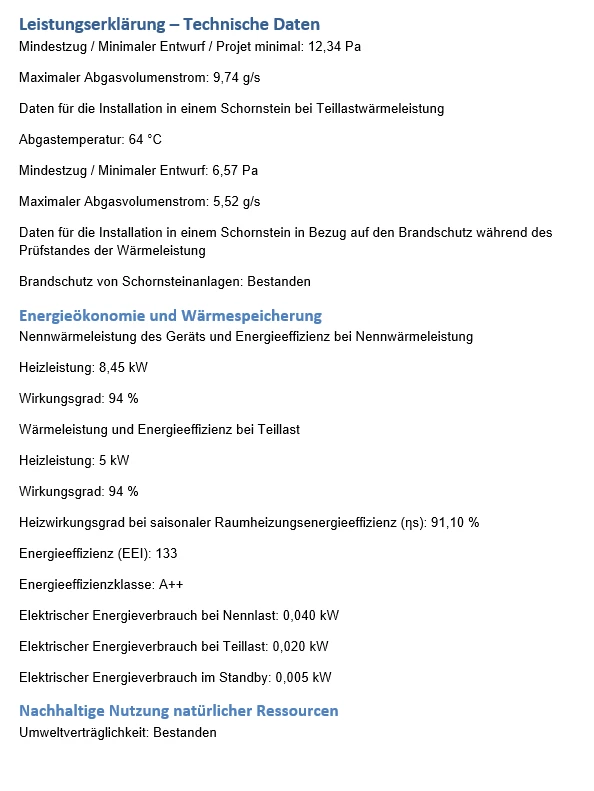 - Durchmesser des Abgasanschlusses (in mm): 80