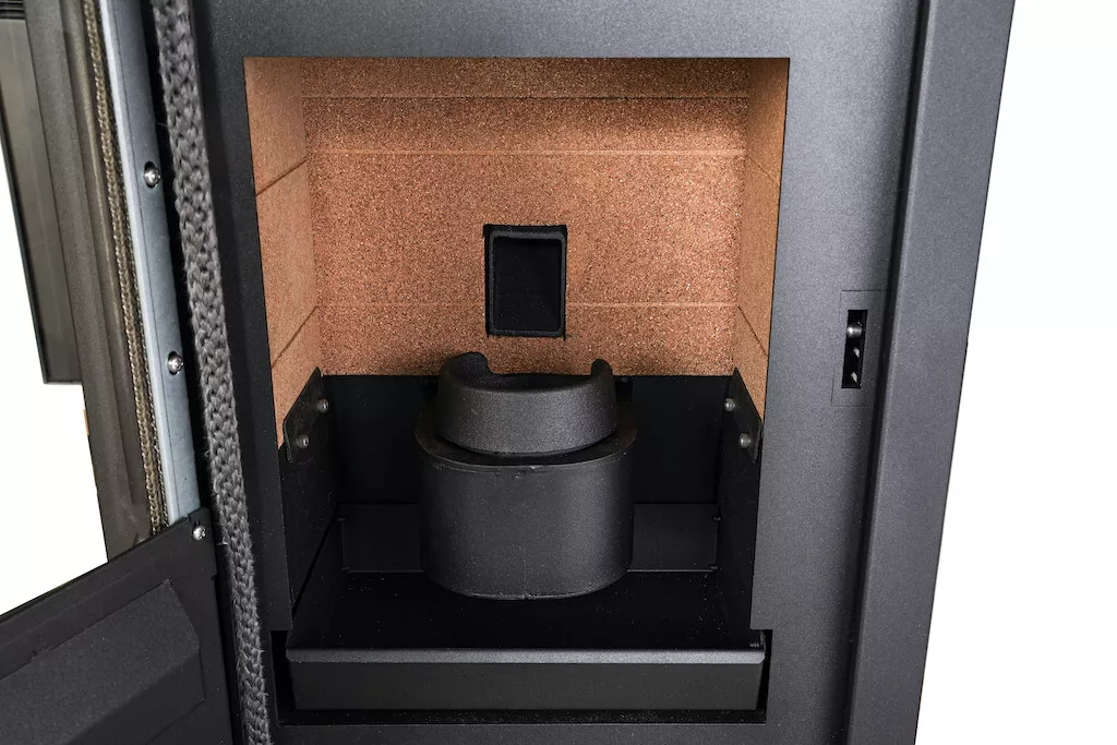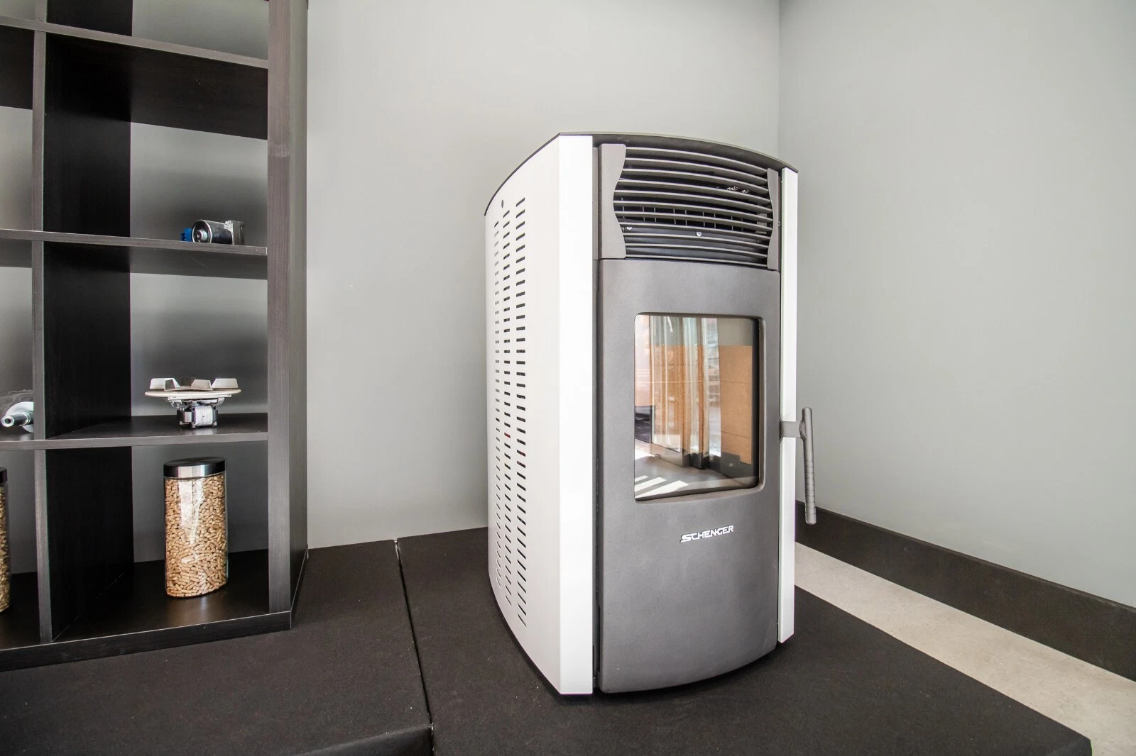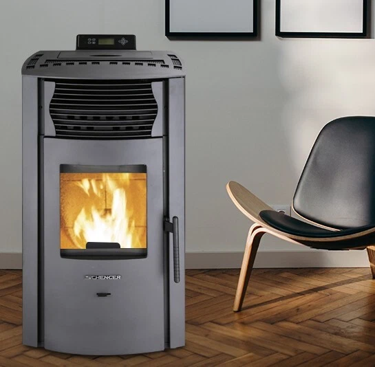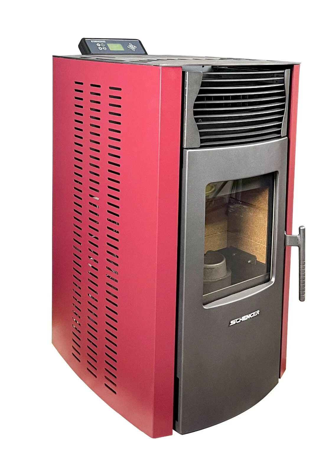 Schenger Pelletofen, vollautomatisch und programmierbar, von der Regulierung der Flammenintensität bis zu den Reinigungsfunktionen. Einfach zu bedienen und verwalten.